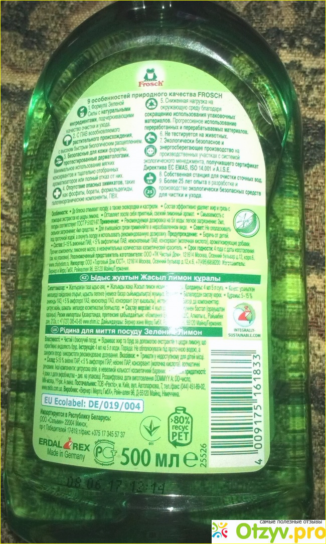Средство для мытья посуды " Зелёный лимон" Frosch в целом мне понравилось, но уж очень быстро расходуется оно- совершенно не выгодно его приобретать. Благодарю за внимание. До новых встреч.