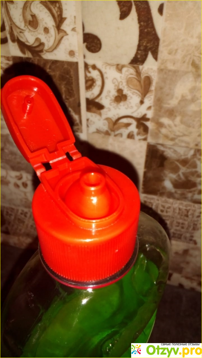 Удлиненная овальная крышка плотно прижимается к флакону и легко при этом открывается. Средство обладает густой консистенцией и можно не опасаться, что выльется вся жидкость из него.