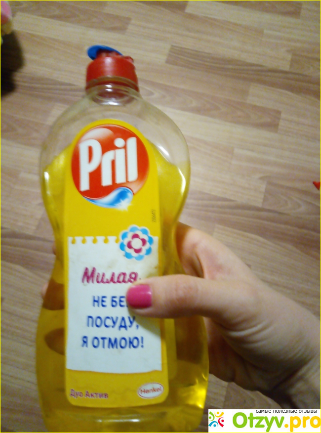 Решила отметить, что упаковка средства отличается так как мы покупали в акцию и название на упаковке "Милая, не бей посуду, я отмою". И действительно, что когда моешь посуду получаешь удовольствие от качества продукта и его прекрасного отмывания. Очень хорошо пенится имеет приятный аромат лимона. По цвету моющее средство желтое, не оставляет пятен, отлично чистить можно им любые жирные загрязнения на кухне.