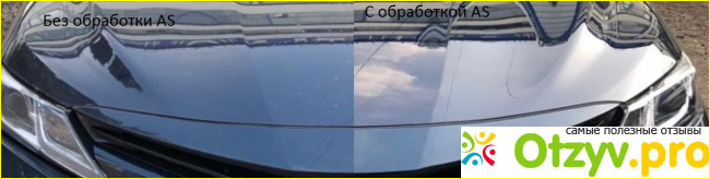 После обработки машина имеет вид новой, блестит, и кажется, что ее натерли на мойке воском. Средство обладает защитой от грязи, машина долго остается чистой и блестящей. В дождливую погоду капли и лужи на капоте собираются в одну и исчезают с поверхности кузова, после чего остается чистая и сияющая поверхность, без разводов и подтеков. После высыхания поверхности никаких разводов и следов средства или капель также не остается. Эффект длится не менее двух-трех недель.