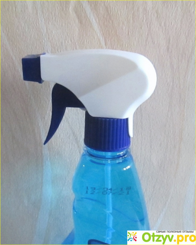 Распыление происходит равномерно. Капли мелкие, улетают на расстояние 30—40 см. Поэтому бутылочку нужно держать ближе к предмету, который чистите. Оптимально – на расстоянии 20 см.