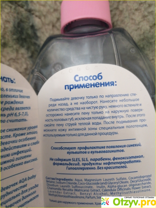 Вроде бы всё здорово, если не изучать состав средства целиком. В нем далеко все не так радужно, как утверждает производитель. Средство при длительном использовании может негативно сказаться на здоровье маленькой девочки, привести к тяжелой аллергии и нарушению интимной микрофлоры. За это снижу средству оценку на два балла. Итог ставлю и балла и 5.