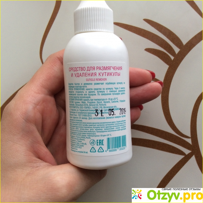 Чтобы воспользоваться данным средством необходимо нанести на кутикулу гель тонким слоем, через 3 минуты благодаря апельсиновой палочке счистить всё, что отойдёт благодаря этому гелю. Во время использования не ощущается жжение, нет покраснения. Гель хорошо очищает ногтевую пластину. Данным средством я довольна, но помогает поддерживать маникюр в красивом состоянии.