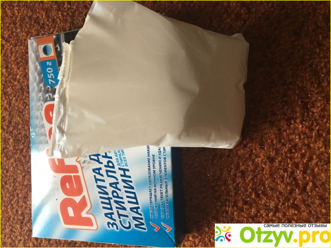 Чайник постоянно чищу от него. Значит и в моей машинке может быть накипь! Стала пользоваться защитным средством Calgon. Оно хорошее, но дороговато. Случайно в магазине Fix Price увидела Refine. Привлекла невысокая цена. Тогда была 45 руб. Упаковано в картонную коробку. А внутри неё два прозрачных пакета с порошком. Это мелкие кристаллы белого цвета. Запаха я не почувствовала. Понравилось что было расфасовано в два пакета , потому что так удобнее им пользоваться. На коробке сбоку указан состав порошка -карбонат натрия, триполифосфат натрия, трилон а также рекомендации по использованию. Еще есть инструкция какое количество состава применять при разной жесткости воды. Я добавляю три соловых ложки спецпорошка прямо в барабан вместе с одеждой. Пользуюсь этим средством при каждой стирке и нареканий у меня нет. Машинка работает хорошо и стирает чисто. У моей соседки тоже есть стиральная машина. Она скептически относится к таким средствам, считает что это пустая трата денег и они не помогают. Но она сломалась из за образования накипи.