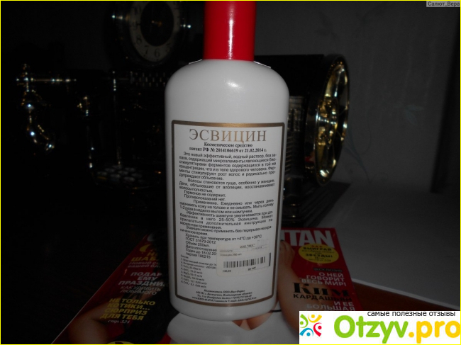 Они начали тускнеть и сильно выпадать, потеряли силу и блеск. Я не знала что мне делать, делала разные маски но от них я не увидела никакого результата. Обращалась к врачу, она мне посоветовала витамины, но при употреблении таких лекарств появилась проблема. Дело в том что у моего малыша появилась на коже мелькая и красная сыпь, по началу я не поняла от чего и как они появились, только потом мне стало ясно. В общем ничего не смогла сделать с волосами, а пить эти витамины я на отрез отказалась, потому что у меня на тот момент был маленький грудной ребенок. Но вот однажды мне моя соседка посоветовала купить и попробовать средство от выпадения волос которое называется "Эсвицин". Средство идёт как лосьон-тоник, укрепляющее косметическое средство для волос. Пользовалась она этим лосьоном уже 2 месяца и была очень им довольна, хвалила его и сама радовалась что теперь у нее будет красивая прическа. Я сразу же побежала в ближайшую аптеку за таким чудо средством, но с моему сожалению там его не оказалось. Когда вышла в ценр города по делам то купила это лекарство в виде жидкого раствора. Сначала мне было трудно его найти, оказывается его не так то и просто купить, он очень дефицитный, нашла его только в третьем аптеке. Даже девушка в аптеке сказала что сама пользуется этим лосьоном и очень довольна, сказала что действительно укрепляет и предотвращает выпадение волос. Стоит такой лосьон примерно 138 или 150 рублей, в белой обычной упаковке с удобной крышкой. Спереди и сзади вся информация о продукте, ничего особенного. Скажу чистую правду, это косметическое средство для волос от выпадения действительно помогает, выполняет свою функцию на ура. Я вылела половину в другой флакон, чтобы удобно было на чистые и влажные волосы нанести это средство. Мужу тоже порекомендовала это средство, теперь он обязательно должен им пользоваться. Я через пару применений уже заметила видный хороший результат, у меня появились маленькие волоски на макушке, на лбу, на затылке. Моей радости не было предела, очень сильно обрадовалась такому результату. Вроде бы не такое дорогое средство, не от иностранных производителей, не люкс, а простое и отечественное производство с лучшими компонентами. Вам его очень советую.