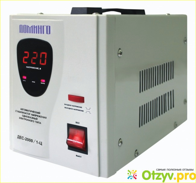 Стабилизатор этот имеет шесть гнёзд для розеток. Кнопку включения/выключения. Отверстия для циркуляции воздуха.