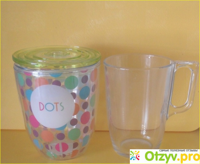 Самым, пожалуй, неправильным в этом изделии является форма этого стакана. Зачем его сделали таким пузатым, не понятно. Держать его обхватив не удобно и сможет только человек с большой кистью. И почему тогда было не сделать ручку?. Его объем 400 мл. Значит, полный стакан еще труднее будет удержать. На фото он в сравнении с любимой маминой кружкой емкостью 350 мл. Я уже думаю о том, что может ручку какую-то приклеить к этому стакану.