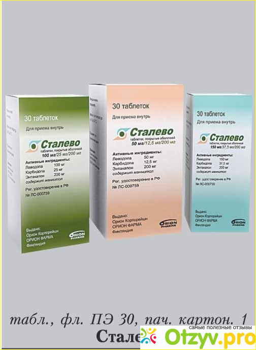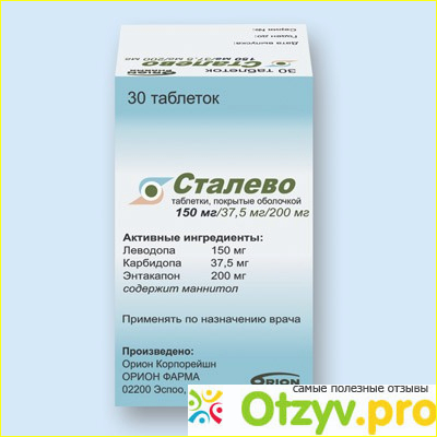 Сталево - противопаркинсонический препарат, выпускается в форме таблеток, покрытых пленочной оболочкой.