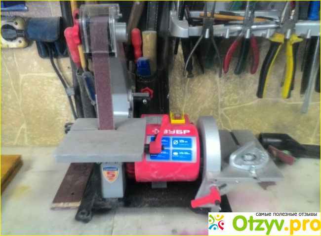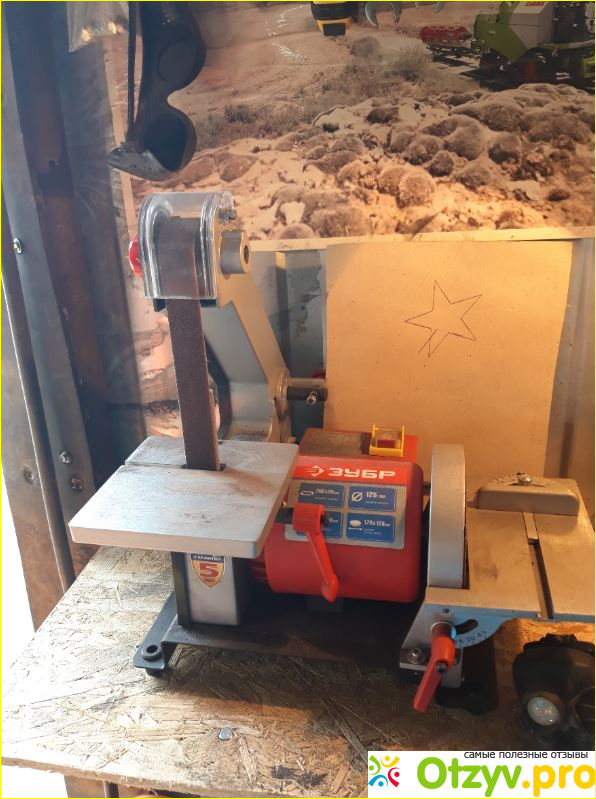 На мой взгляд модель довольно удачная, особенно, если учитывать её умеренную стоимость, приобрёл за 5630 р. Станок действительно универсальный, подходит для любых шлифовок. Работает с такими шлифовальными приспособлениями как лента и круг, что позволяет отшлифовать даже очень сложные материалы. Есть защита, которая не позволяет произойти случайному включению. Можно отрегулировать и настроить любой угол наклона рабочей поверхности, что позволяет удобно работать с деталями, избегая лишнего напряжения во время труда. Есть угловой упор с фиксатором угла наклона стола. Можно подсоединить пылесос и полностью избавиться от создаваемого мусора. Мощность вполне достаточная 330 Вт. Круг диаметром 12.5 см, вращается со скоростью 2950 об/мин. Поверхность рабочего стола небольшая, примерно 18 на 13 см. Лента размерами 76.2 на 2.5 см., у которой скорость 13.5 м/с. Стол можно наклонять от 0 до 45°. Весит всё устройство умеренно, где-то 8 кг. За счёт резиновых упоров на столе стоит крепко, так что во время работы не сдвинешь. В комплекте шёл патрубок для отведения пыли м 2 имбусовых ключа.