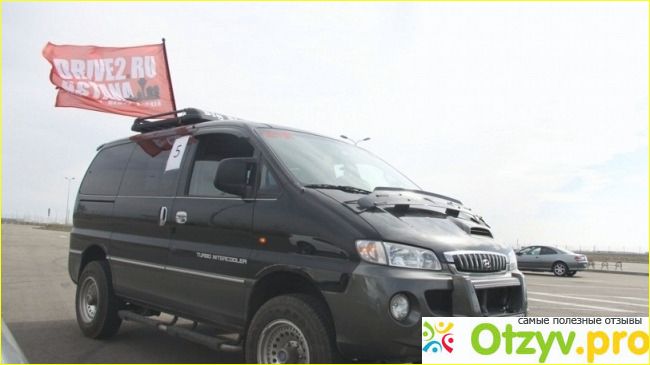 Постоянный задний привод(передний подключается с кнопки). Литые диски никого не оставят равнодушными . Расход топлива практически , как у легкового автомобиля, но он более практичный, мощный и вместительный. Двигатель работает безупречно! Объём двигателя 2.5л, турбина низкого давления включается после 2000 оборотов, мощность 147л. с., подвеска: впереди торсионы сзади рессоры, дифференцированная рама т. е. рама кузов одно целое, АБС, противотуманки. Подушка безопасности для водителя, штатная музыка вполне хорошо звучит, шесть динамиков, подогрев дворников, подогрев сидений (передних), сонары, автоматический свет, громкая связь для телефона. Машина едет отлично и легко управляемая. Данная машина с механической коробкой. Полный привод это отдельный разговор ни разу не встал хотя где только не носило , на море по песку, зимой по снегам на охоту без проблем. Я нашёл ещё один плюс - недорогие запчасти! Дизайн современный , машина смотрится гармонично. У меня есть дети, поэтому в машину я повесил потолочный телевизор, чтобы детям во время поездок было не скучно и они могли смотреть мультики, а моя жена с родителями и родственниками фильмы и программы. Очень удобно, что я могу сам контролировать температуру Летом я могу охладить , включив два кондиционера (но на практике мне хватает и одного). Зимой включить печки, за 10 минут машина нагревается до комфортной мне температуры. Вентиляция салона работает не зависимо от печки. Шумо изоляция средняя. Все сиденья имеют регулировку наклона спинки. Салон трансформер все сиденья двигаются, а первых три вращаются на 180гр. можно разложить в большой ровный диван, чехлы заводские. Сиденья стоят в 3 ряда, пассажирских 2 ряда.. Кстати при движении скрип механизмов сидений довольно слабый . Большой минус салона, отсутствие доп. бардачков т. к. пол прямой без различного рода углублений, пришлось сзади бросить пластиковый ящик и в нем все хранить, компрессор, аптечку, трос, ну и мои безделушки. На настоящее время проехал 15 тыс. км. Включая перегон. Пока ничего не ломалось. Машина высокая, на дороге чувствую себя выше всех. Подводя итоги могу сказать, что катаюсь и радуюсь! Микроавтобус от корейского производителя стал для меня отличным помощником. Эта машина поразит технической комплектацией и приемлемой ценой.
