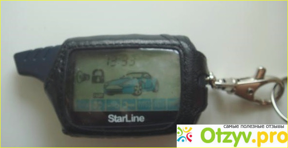 На этом брелоке всего 3 кнопки, одна для вкючения сигнализации, вторая для отключения и третья для навигации в меню. Дисплей информативный, на нем отображается куча всякой информации и даже часы есть. Все кстати на русском языке.
