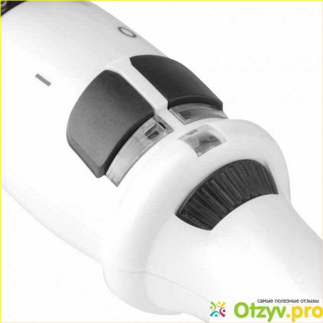 На ручке расположены две кнопки включения, под ними лампочки.