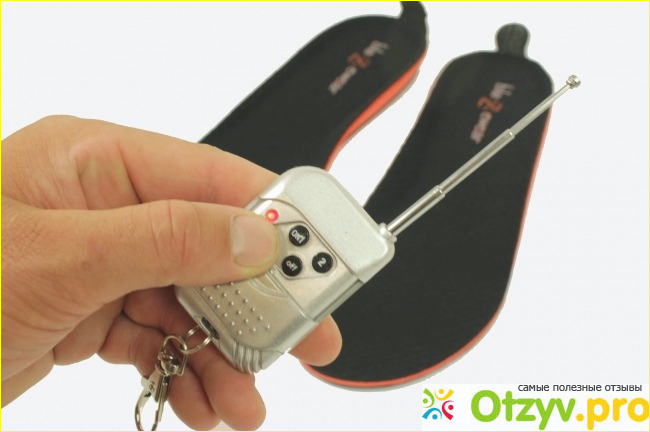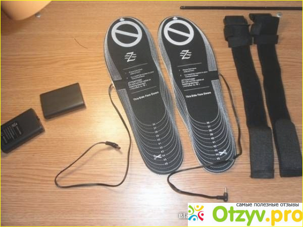 Стелька вставляется в обувь, которая должна быть немного больше своего размера, проводок от стельки подключается к блоку питания, а потом нажатием кнопки подается тепло в стельку.