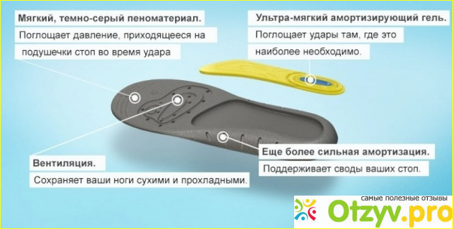 Во время ходьбы ощущается аммортизация стопы, и, когда вы идёте по очень неровной и твердой поверхности, дискомфорта и неприятных ощущений не будет – ваш шаг будет мягок.
