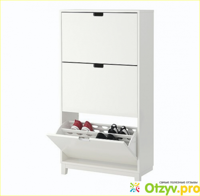 В целом получаем прекрасный и относительно недорогой мебельный вариант для прихожей. Все три секции удобно открываются, и конструкция в целом прекрасно подходит для различных пар обуви. Достоинством можно назвать качество материалов, отсутствие недостающих деталей или лишних, приятный внешний вид, возможность вплотную приставить к стене и в целом компактные размеры и удобства. К небольшим недостаткам можно отнести только не продуманную конструкцию для установки грязной обуви. Могли бы предусмотреть какие-нибудь пластиковые лотки или ещё что-то в этом роде. Тогда бы комплектация была бы в полной мере, и не пришлось бы ничего придумывать самостоятельными силами.