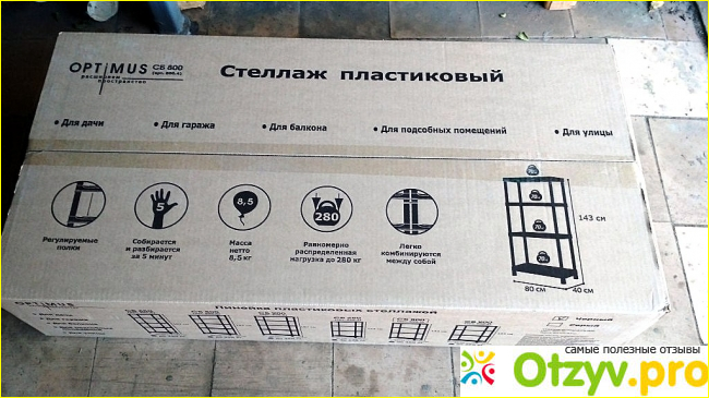 Но, эта работа меня не вдохновляла, ведь за такую же цену на сегодняшний день можно приобрести довольно хорошие металлические, пластиковые или деревянные стеллажи. После недолгих походов по магазинам, изучения наличия данного товара в Интернет-магазинах, свой выбор я остановил на стеллажах под названием: Стеллаж бытовой «OPTIMIS» . Этот стеллаж пластиковый и предназначен для демонстрации и хранения различных предметов (так написано в прилагаемой инструкции). Но по большому счету он универсальный во многом. Его можно использовать, как в домашних условиях, так и в торговых, выставочных и даже в складских помещениях. При этом он отлично подходит для применения, как в закрытых, так и в уличных помещениях. Такие характеристики подтверждают, что он смело подойдет и для хранения различных предметов в сарае, в гараже, в погребе или на балконе. То, что он изготовлен из пластика, я тоже считаю большим плюсом. Пластик, из которого он изготовлен, не подвержен коррозии, а это значит, что он будет служить долго. Также, в отличие от деревянных стеллажей, он не портится от влаги, не поедается различными насекомыми.