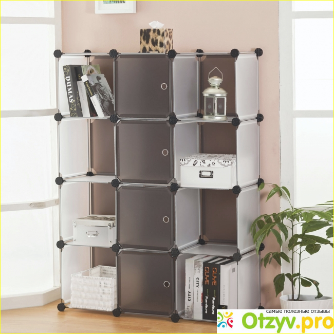 Стенки полок полупрозрачные. Все детали стеллажа тщательно обработаны. Полочки открытого типа, без дверей – это сразу позволяет найти нужную вещь.