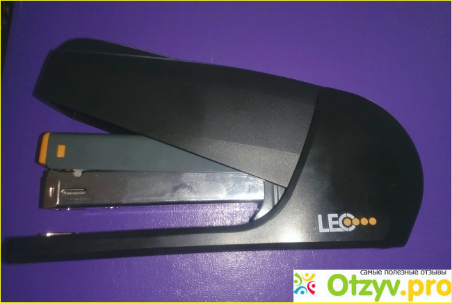 Недавно я себе купила степлер от торговой марки Leo. Я выбрала черного цвета, с оранжевыми вставками, выглядит оригинально.