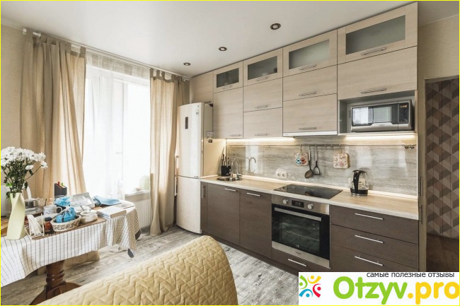 Преимуществами являются все-таки умение максимально вписать каждую деталь даже в нестандартное помещение. Укомплектовать всей необходимой бытовой техникой, также подключить модули.