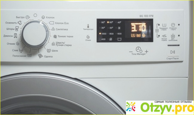 Функций в этой стиральной машинке очень много, есть ещё предварительная стирка, лёгкая глажка, отстрочка старта, дополнительное полоскание. Режим "Лёгкая глажка" предназначен для того, чтобы постиранное бельё не было помятым, и чтобы отсутствовали складки, и это потом намного упрощает процесс глажки его. Но нужно знать то, что этот процесс нужно объязательно включать зарание перед включением любого другого процесса. Меня ещё очень впечатлила функция "Отстрочки старта", так себе настроил на определённое время, которое вам более удобно, и когда оно настаёт, машинка включается и начинает выпонять свою функцию. Стирает вещи отлично, мне она очень понравилась в использовании, а её функции меня очень впечатлили. Полощит она так же хорошо, на белье совсем не остаётся следов порошка, а ещё там есть функция "Дополнительное полоскание", которое сестра использует для полоскания нижнего белья, и постельного. Загружать сухое бельё можно не больше 5 кг, а кнопка включения находится в правом нижнем углу, которая к тому же выполняет ещё и функцию паузы.