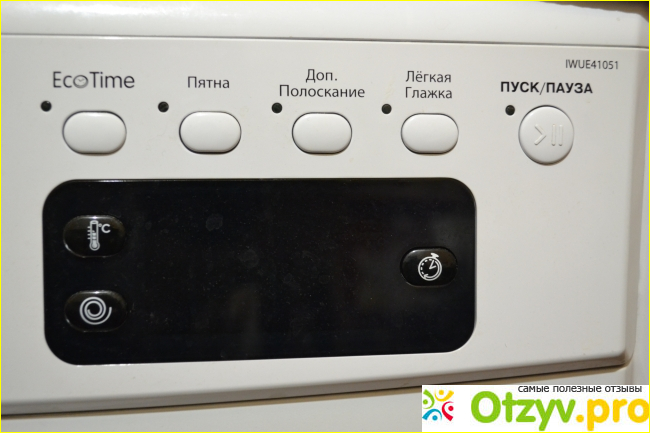 Плюсов при работе с ней я видела много. Она имеет простое управление, которое не зависает. Если выбрать программу стирки хлопкового белья, она будет длиться всего полтора часа. Другая наша машинка стирала хлопок почти три часа! Разница огромная. Еще имеется быстрый режим, занимает всего пятнадцать минут. Когда стирка заканчивается, indesit iwue 4105 издает громкий писк три раза.