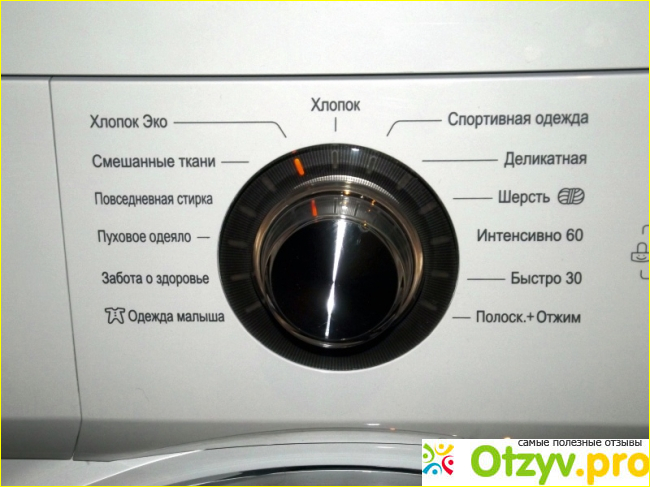 На передней панели установлен традиционный поворотный механизм для выбора программ стирки. Всего программ – 13.