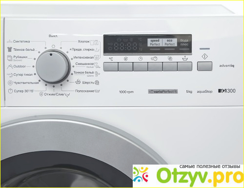 На самом деле ничего гениального в ней нет. Абсолютно стандартный набор, ну может чуть больше функций, чем мы пользуемся. Максимальная загрузка белья 5 килограмм. Максимальные обороты при отжиме 1000 в минуту. Мне кажется что это оптимально, потому что при оборотах в 1800 я достаю немного влажное очень мятое белье. Его тяжелее гладить. Поэтому 1000 вполне достаточно. Так же есть регулировка отжима. Естественно меньше 1000 оборотов можно, больше- нельзя. Есть цифровой дисплей с подсветкой. Защиту от детей вы можете включить нажав кнопку. Так же есть контроль пены.