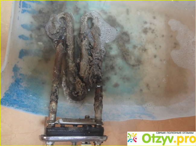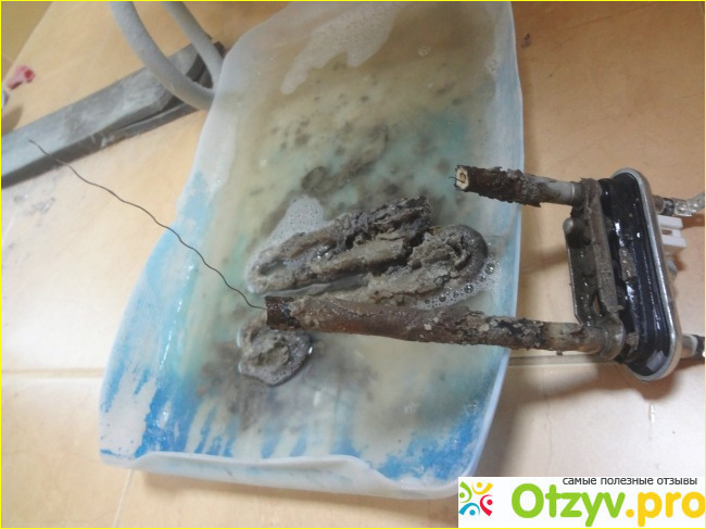Толстая железяка сломалась пополам и держалась на тоненькой проволочке. Тэн был покрыт слоем плохопахнущей грязи - как при чистке канализации.