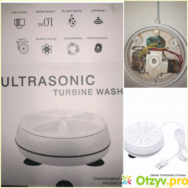 Идея очень хорошая, но исполнение не очень. Предполагается, что прибор погружается целиком в воду и там должен работать, вращая диск с разной скоростью и создавая бурление воды. На первых стирках машинка работала в 2-х режимах, переключаясь автоматически, но мощьность была слабовата. Но конструкция оказалась не герметичной, и как результат, механизмы и платы оказались намокшими, что привело к выходу из строя портативной стиральной машинки. Цена такого пробника идеи должна быть не более 300руб.