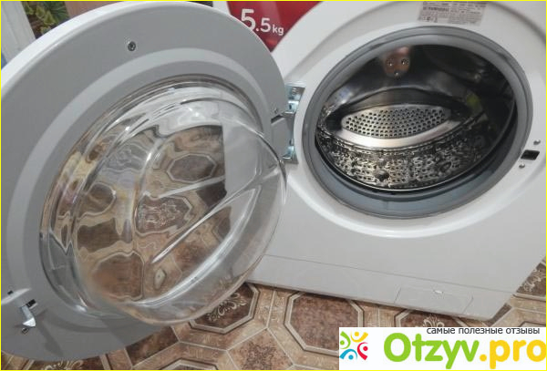 Эта машина имеет фронтальный тип загрузки белья, люк открывается на 180 градусов. Максимальное количество белья, которые можно загрузить в машину это пять с половиной кг. Белье закладывать очень удобно, поскольку загрузочный люк сделан достаточно широким, около 30 см. В емкости для стирки имеется нержавеющая барабан, который имеет специальные отверстия чтобы распределить уровни при автозагрузке.
