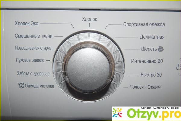Управляется машинка при помощи электроники, то есть имеет интеллектуальный тип управления. Машина сама может определить массу загруженных вещей и добавлять в воду в соответствии с выбранными функциями. Установить температуру стирки можно ручным способом, а можно использовать специальные колёсико. Потом происходит процесс стирки, затем белье выполаскивается, потом можно добавить функцию суперполоскания. Если стирать по стандартной схеме, то воды на одну стирку расходуется 53 л, а потребление электроэнергии составляет 1 кВт. Отжим можно также настроить самостоятельно, я обычно использую режим в 1000 оборотов в минуту, при таком режиме бельё получается практически сухим, и его достаточно легко просушить на веревке на улице, или дома на сушилке.