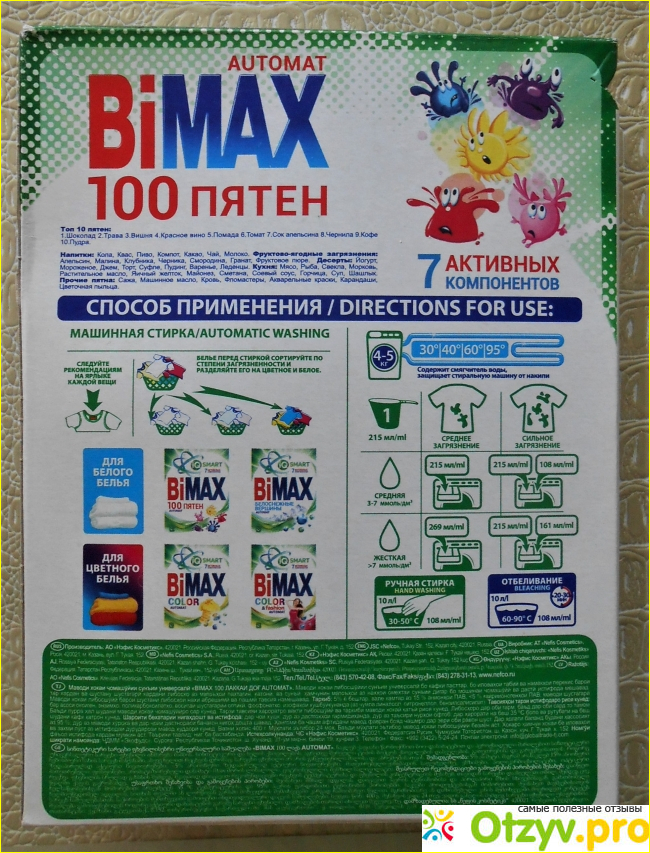Сам порошок имеет приятный запах, и что не могло не порадовать, хорошо пенится. Но на этом плюсы заканчиваются. Порошок ничего не отстирывает!!! Даже те пятна, которые отстирываются обычным стиральным мылом, а про суперсложные пятна, я вообще молчу. Коробка красивого, привлекательного вида?,