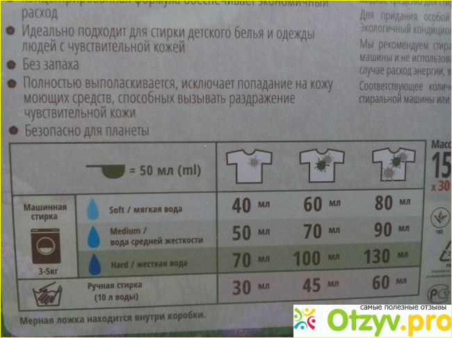 Вообще производитель постарался произвести впечатление. Симпатичная овечка, куча надписей на упаковке, которые уверяют, что порошок экологичный, гипоаллергенный, без запаха и вообще подходит для стирки белья деткам и всем, у кого кожа чувствительная.