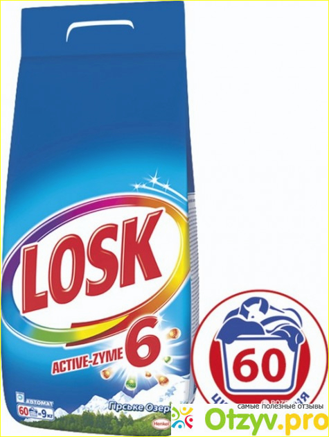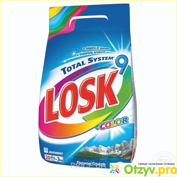 тиральный порошок LOSK автомат с ароматом "Горное озеро", изначально купила его в маленькой картонной упаковке, но после того как я им попользовалась купила аналогичный первому, но уже в большем весе на девять килограмм в полиэтиленовой упаковке и рассчитан как минимум на шестьдесят стирок. Срок годности которого составляется тридцать шесть месяцев. Стоимость такой объемной пачки составила триста пятьдесят гривен. Разновидность порошка "Горное озеро" предназначен специально для стирки белых, светлых вещей, но я им иногда стирала и цветную одежду, единственно, чего побоявшись, так это белых, пятен или своеобразного налета на темной одежде после его использования. К тому же производитель указал, что возможно производить стирку цветного белья, за исключением изделий из шерсти и шелка.Бренд LOSK известен уже довольно давно, не одно десятилетие им пользуются хозяйки. Страной производителем данного продукта является Польша. Порошок относится к экологическому классу безопасности, так как не содержит каких-либо фосфатов. Подходит для стирки белья в температурном режиме, от двадцати до девяносто пяти градусов по Цельсию. Также не смотря на то, что на его упаковке указано, что он предназначен для стирки в стиральных машинах абсолютно любого типа, его все равно можно использовать и для ручной стирки, просто происходит не такое активное пенообразование, как у порошка предназначенного для ручной стирки. Производитель указывает, что при средней и мягкой жесткости воды и загрузке белья в четыре-пять килограмм, достаточно ста пятидесяти грамм на одну стирку. Минусом для производителя является то, что в такую объемную упаковку он не положил какого-то мерного стаканчика или ложки для более удобного и точного замера этих ста пятидесяти грамм, потому что количество порошка приходится сыпать наугад.