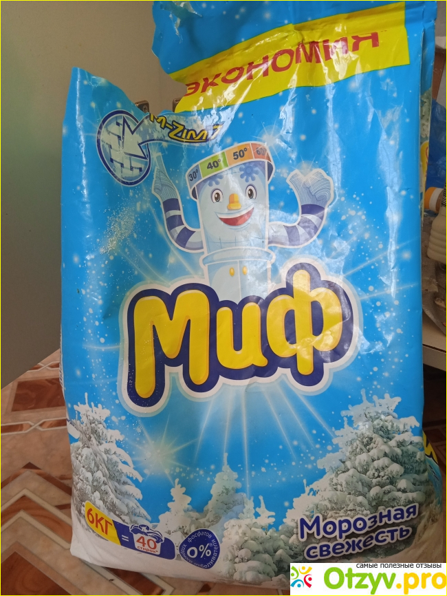 Порошок от марки Миф знаком мне еще с детства и я до сих пор его использую. Всегда беру большую упаковку, весом в 6 кг. Стараюсь покупать по акции за 399рублей.