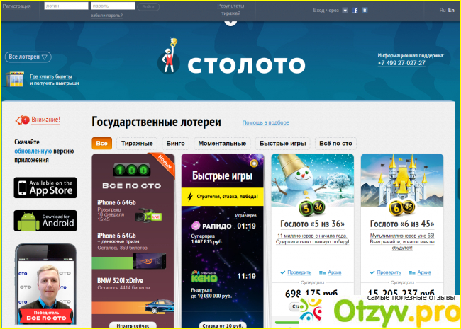 Здесь есть вся информация, касающаяся точек продаж в каждом конкретном населенном пункте. Занятые люди смотрят прямые эфиры и прошедшие трансляции. Есть мобильная версия сайта и приложения для смартфонов. Сайт предлагает всю правовую информацию, касающуюся организации процесса. Кроме того, доносит информацию о том, что игра может перерасти в зависимость. И это уже личная ответственность каждого из покупателей. Тем не менее, компания ставит своей целью популяризировать лотереи в стране, как увлекательный досуг. Призванный помочь людям весело провести свое время в кругу семьи, и даже поправить собственное материальное положение. А еще невероятно приятно и интересно читать истории реальных победителей. Видеть их счастливые глаза и понимать, что они вообще не ожидали того, что на их долю свалится такое счастье. Порой мы участвуем в розыгрыш будучи скептиками и изначально вообще ни на что не рассчитываем. Именно такой настрой и позволяет победить.