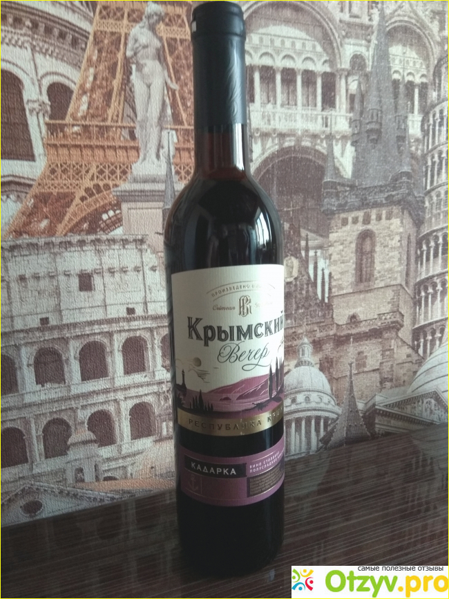 К приезду родственника было выбрано столовое полусладкое красное видо Крымский Вечер Кадарка. Напиток произведен и разлит в Республике Крым ООО Винный Дом Советский.