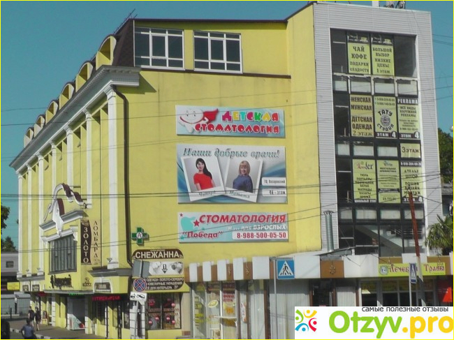 Нам повезло, что мы зашли именно в стоматологию "Победа", которая как раз находится на улице Победы в Центральном доме быта (в Лазаревском) на 4 этаже.