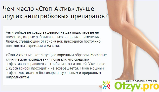 Стоп Актив - это уникальное масло, которое быстро избавляет от грибкового заболевания. Масло Стоп Актив действенно лечит кожное заболевание, устраняя саму причину - грибковую инфекцию, из-за которой заболевание существует на теле человека.