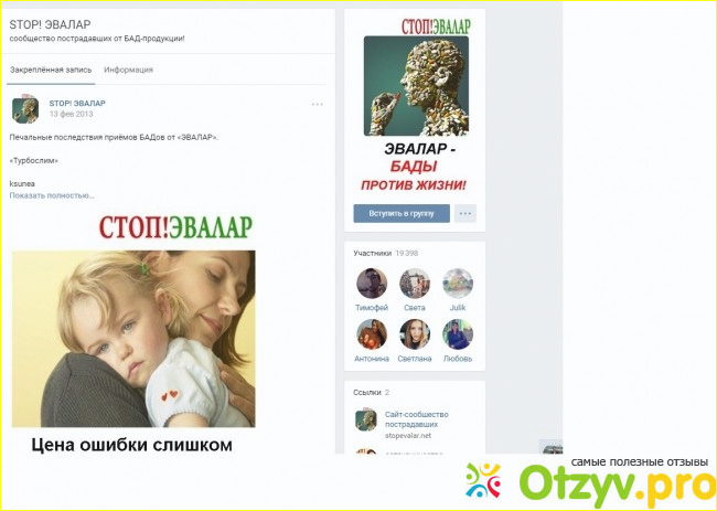 Вот об этом и думают участники группы в ВКонтакте "Стоп Эвалар". То есть, как я поняла, основная цель администрации группы, донести до пользователей главную идею: не пользуйтесь бадами, в том числе и от "Эвалар".