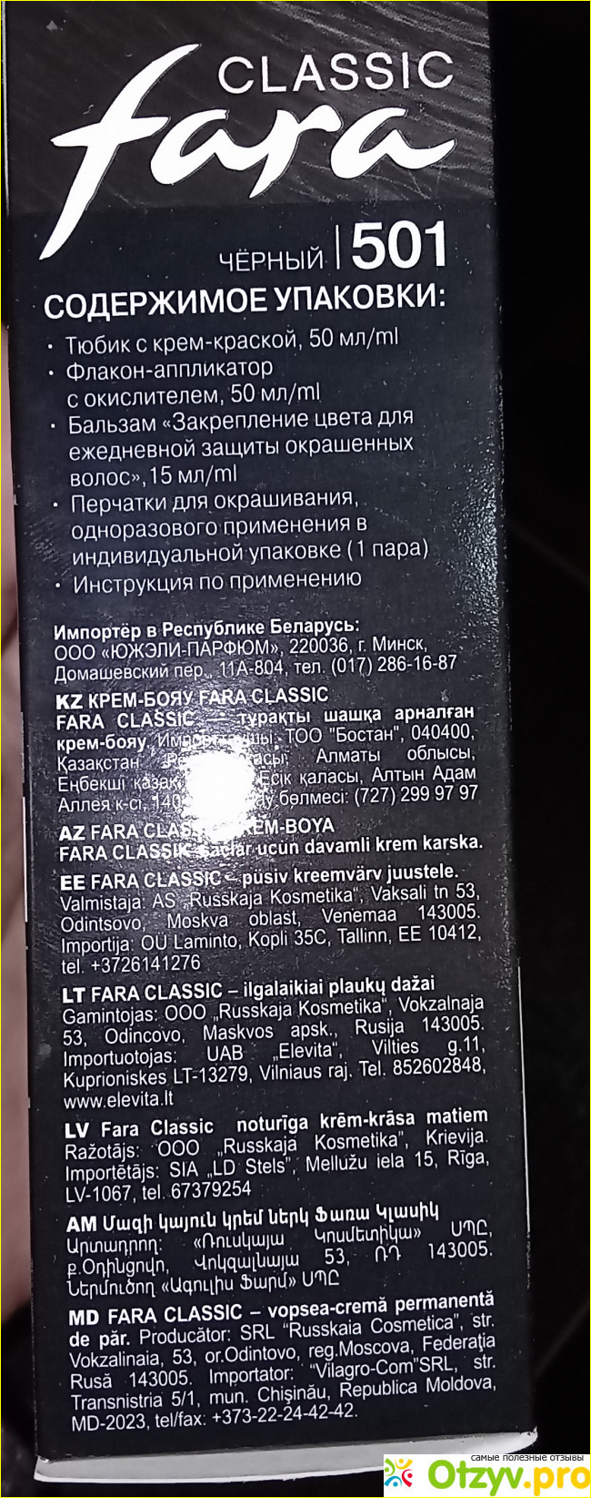 Давно не красила волосы в черный цвет, почти забыла как выгляжу с темным цветом. Осенью решила поменяться немного, приобрела краску для волос в бюджетном варианте - Fara classic обошлась в оптовом магазине в 110 рублей. Упаковка стандартная, инструкция внутри упаковки, на ней самой напечатана.
