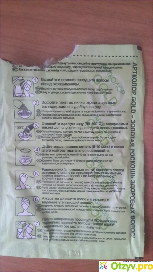 На глаз мне все же удалось смешать краску до однородной массы сметаннообразного состояния, дала ей остыть, еще раз перемешала. Когда я начала наносить краску на волосы, почувствовала в краске крошки порошка, которые осыпались с волос. Наносилась краска на волосы плохо, думала мне не удастся равномерно нанести краску на все волосы, и где-то в глубине волосы не прокрасятся. Поэтому я добавила еще немного воды, чтобы краска стала пожиже. После этого процесс пошел гораздо лучше и быстрее. Держала я краску на волосах 30 минут, после чего смыла водой. Сначала результат мне понравился, цвет волос получился почти, как на упаковке. Но после трех раз мытья головы, темными остались только корни волос. Сами волосы стали светлее.