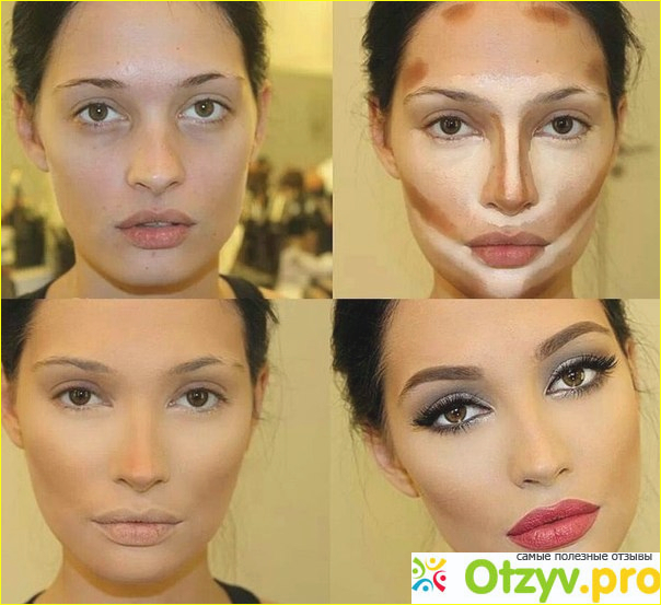 Контуринг лица делается для того, чтобы изменить формы лица зрительно, скрыть щечки, показать скулы, изменить подбородок и форму носа, правильно показать форму бровей и лоб. Выглядит он не всегда естественно, как на фотографии размещенной ниже, но если делать контурирование лица дома, то можно добиться естественности. Но я чаще всего делают контуринг лица на для праздничного макияжа, но бывает, что я использую некоторые средства и в повседневном макияже, например, контурирую форму носа.