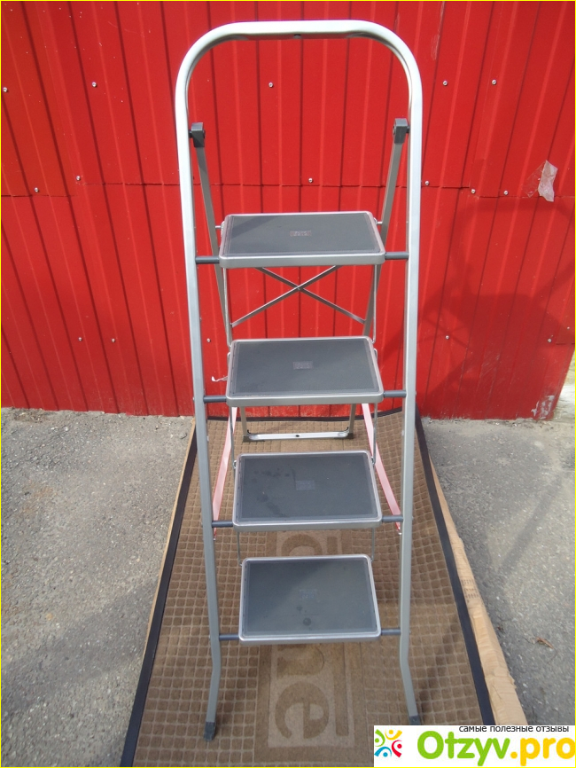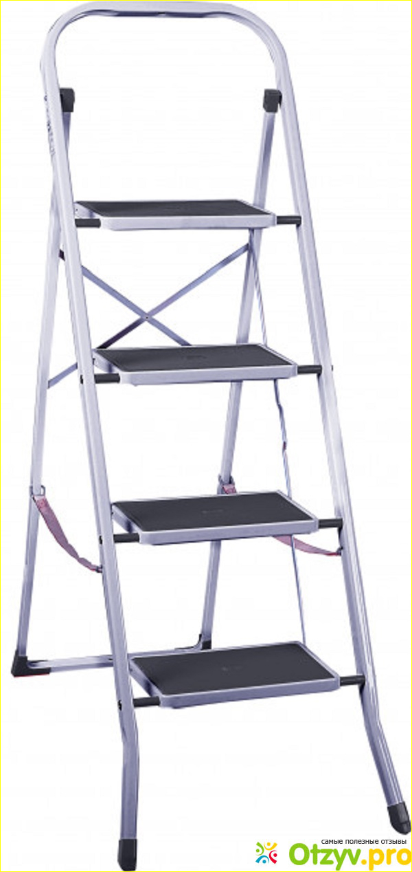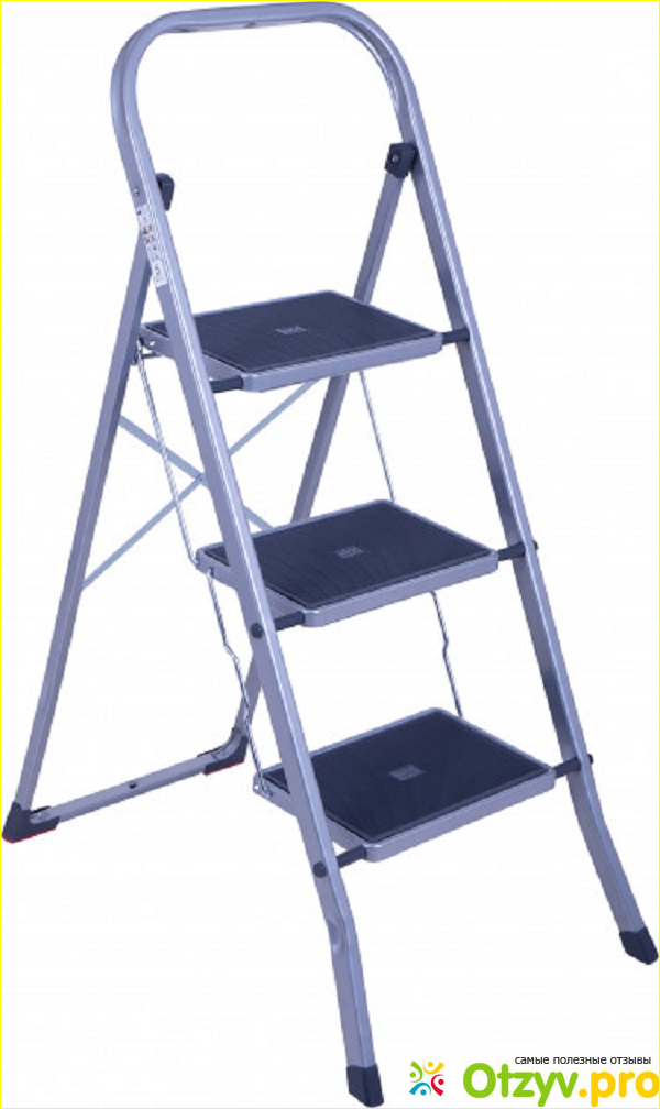 В подобных товарах немаловажна надежность и безопасность. Я считаю, что производитель в данном случае все предусмотрел. Позаботился о ножках. Она сделаны с пластика, широкие. Не дают стремянке скользить по полу. Она упорно стоит.