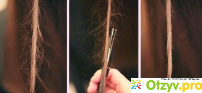 Для процедуры кроме острых ножниц, зеркала и пары рук ничего не требуется. Вся суть: отделяем тонкую прядку волос, сворачиваем плотным жгутом, проводим 1 раз "против шерсти", чтобы концы поднялись, и вперед. Аккуратно срезаем торчуны.