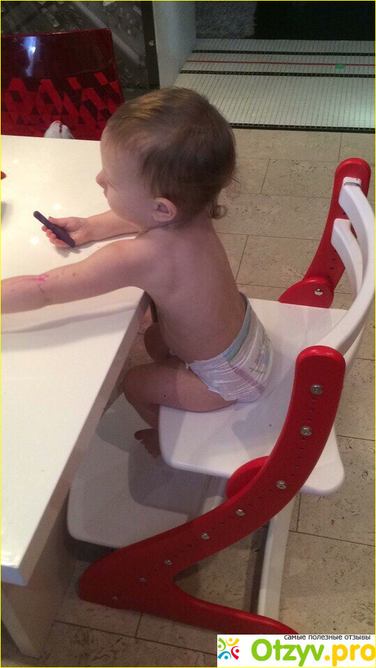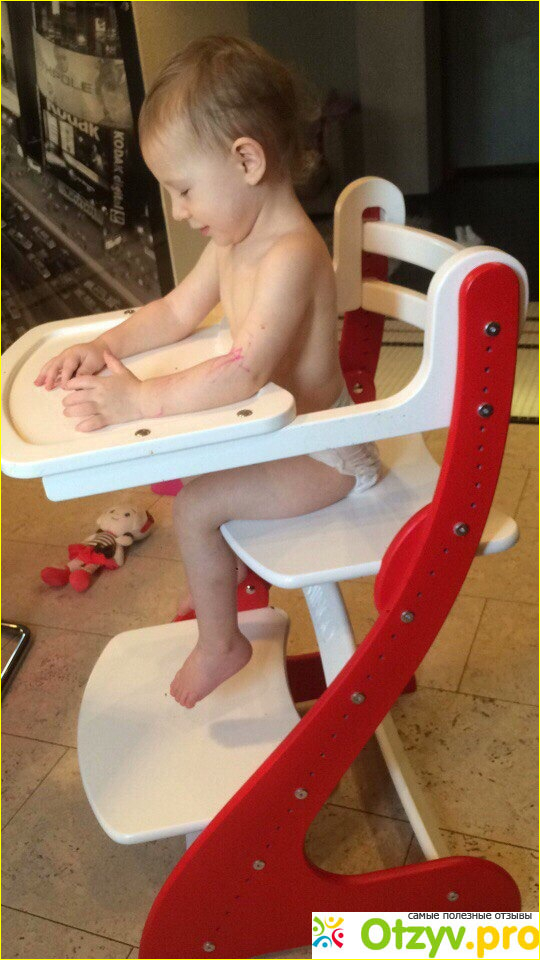Именно его я и решил брать по многим рекомендациям. Ребенок на нем уже 3й месяц, и, как оказывается, с выбором я не ошибся. Стул, во-первых, из экологичного материала, во-вторых, удобный и с простой регулировкой по высоте и глубине. Моему ребенку на нем удобно, чувствует он себя комфортно, не капризничает. Конструкция мне нравится, все надежно в нем, крепкое и не расшатывается, даже когда ребенок начинает на нем плясать :) Это я образно, конечно :) Сам по себе стул легкий. Мне еще нравится, что у него правильная изогнутая спинка стула, которая обеспечивает нормальное положение позвоночника, так что проблем с этим не должно быть. Было много вариантов по цвету, но остановился именно на красном.