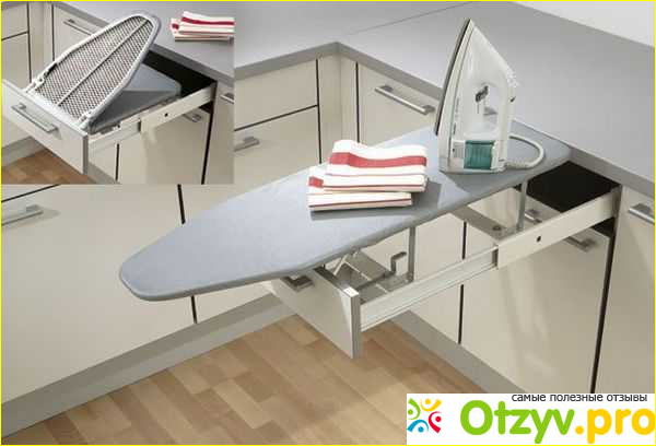 Видите, как встроена гладильная доска в кухню, сожалею что не знала этого варианта ранее, так как с переездом в дом заказывала мебель для кухни, можно было идеально встроить гладильную доску в кухню.