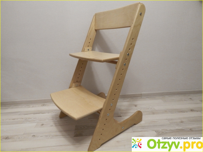 У стульчика по мимо сиденья есть подножка, она тоже регулируется по высоте. К достоинствам такой модели можно отнести съемную столешницу. При желании ее можно убрать. Для безопасности ребенка в этом модели имеются трех точечные ремни безопасности, которые удобно фиксируются на ребенке. Стульчик достаточно удобные, но его сложно переносить с места на место. так как снизу у него нет колес. Но это вполне нормальное явление для деревянных стульчиков. так как при наличии колес они были бы не такими устойчивыми.