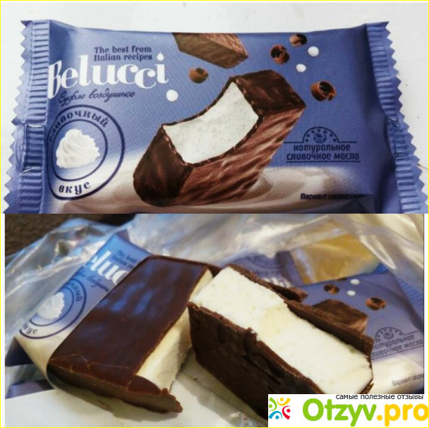 Суфле нереально нежное и мягкое, в составе имеется сливочное масло. Сверху покрыто слоем тёмного шоколада, который действительно шоколад, а не жалкое подобие. Не скажу что конфета приторная, суфле в меру сладкое.
