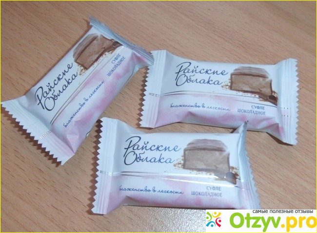 Очень привлекает, что в конфетах не слышится запаха ароматизаторов и синтетики, как часто это бывает с современными кондитерскими изделиями. Хотя, честно говоря, никогда не интересовалась подробным составом данной продукции (подозреваю, что химия тут всё-таки есть – её не бывает сейчас лишь в кондитерке домашнего приготовления со сроком хранения 2-3 дня), поэтому ковыряться, анализировать ингредиенты и в конце концов портить себе настроение абсолютно не хочется. Получаешь порцию сладкой жизни, гормон счастья в кровь выделяется – и пусть тебе будет благо! Но похудеть на таких добрых вкусных эмоциях у меня, к сожалению, точно не получится, пока похожие конфеты производитель с потока не снимет. Ну и пусть: зато я добрая, мягкая и нежная – практически как эти сладкие «Райские облака»! :)